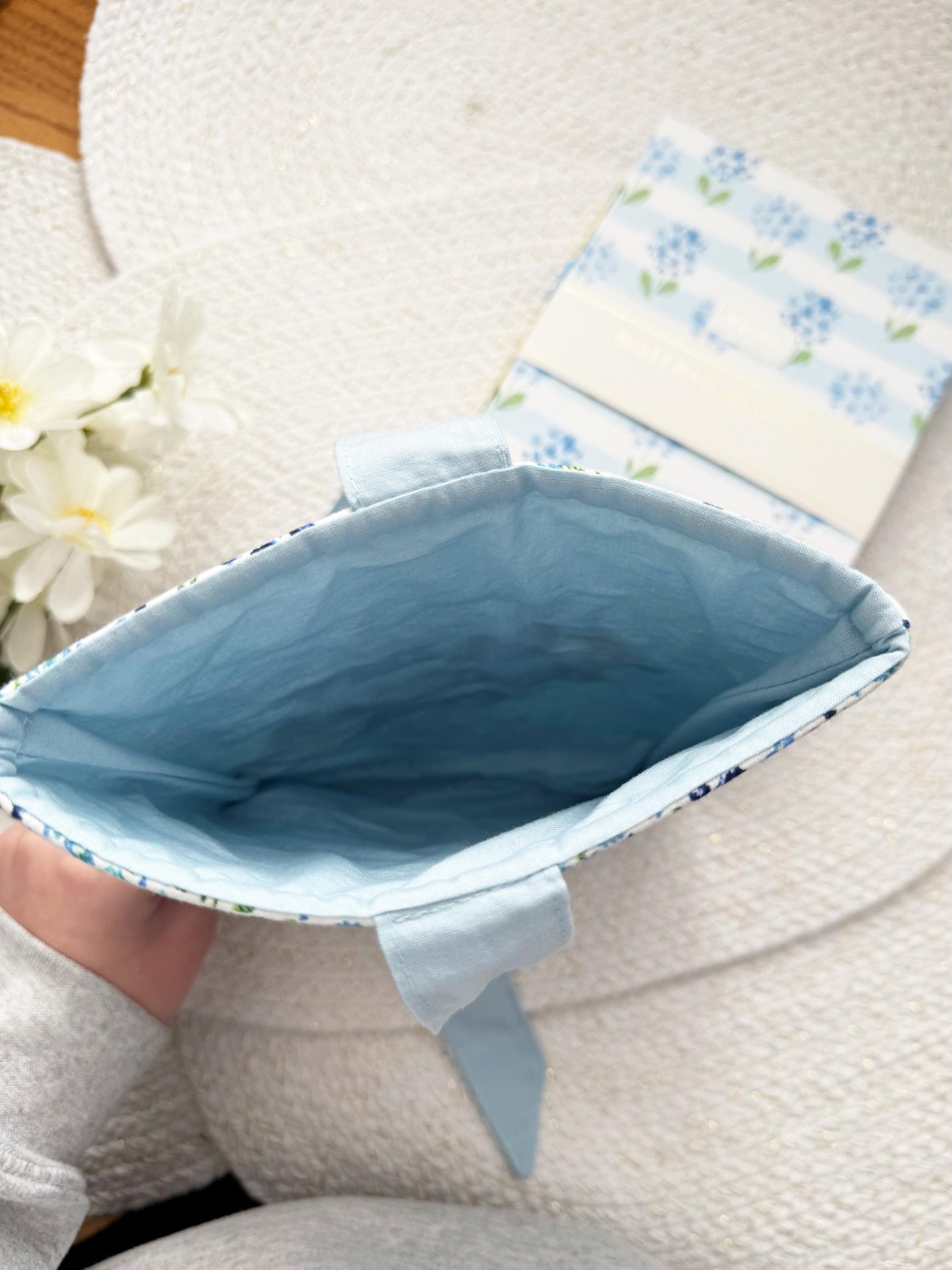 Blue Mini Floral 'In My Bookish Era' Embroidered Book Sleeve