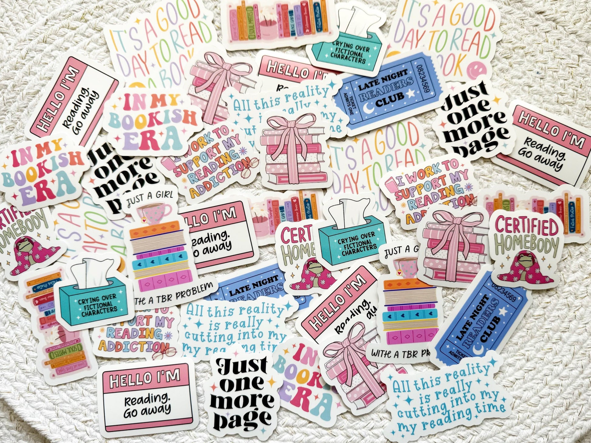 There handmade glossy vinyl book themed sticker are perfect to add to your kindles, laptops, water bottles, journals, phone cases, scrap books and etc.