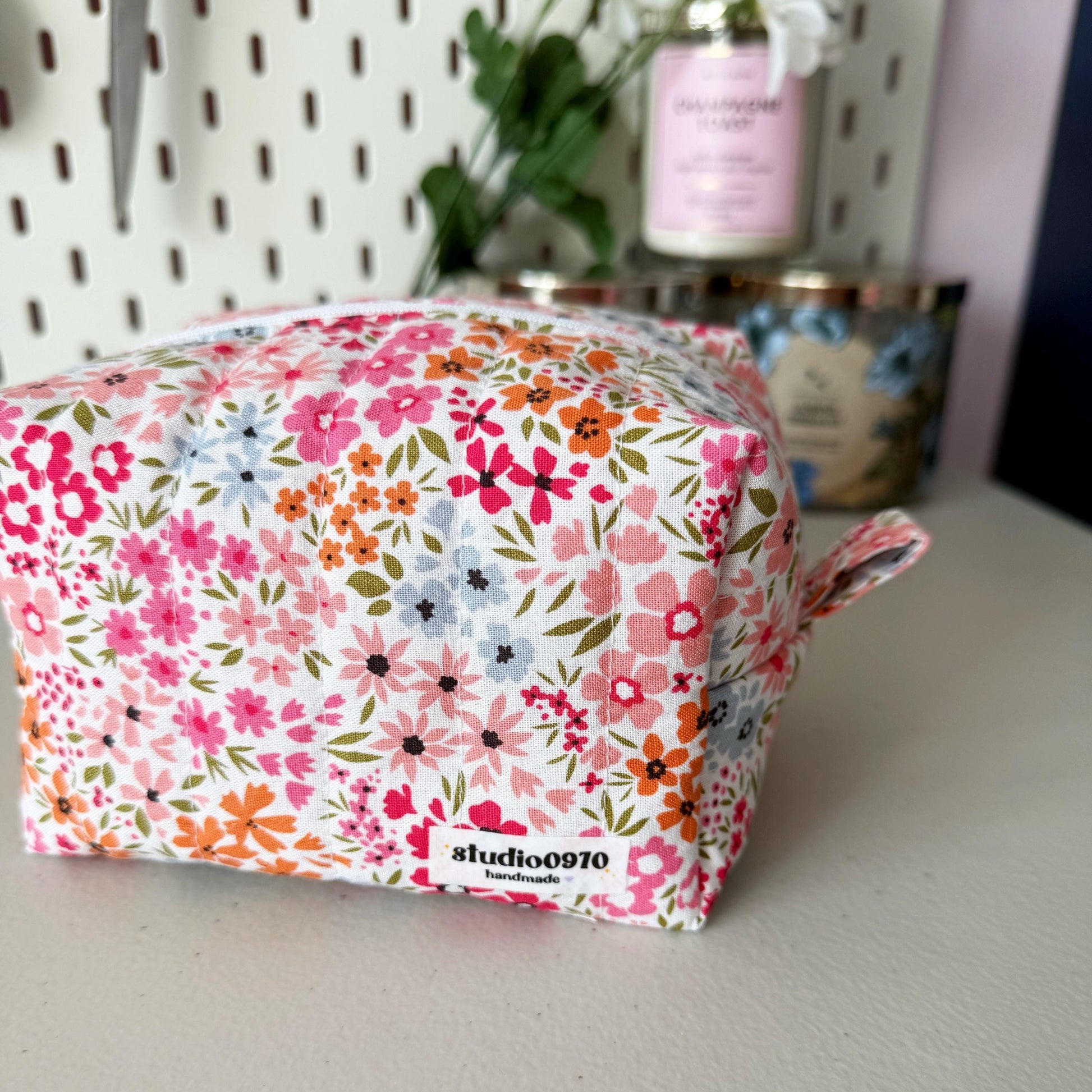 Floral On Pink Quilted Mini Boxy Makeup Bag
