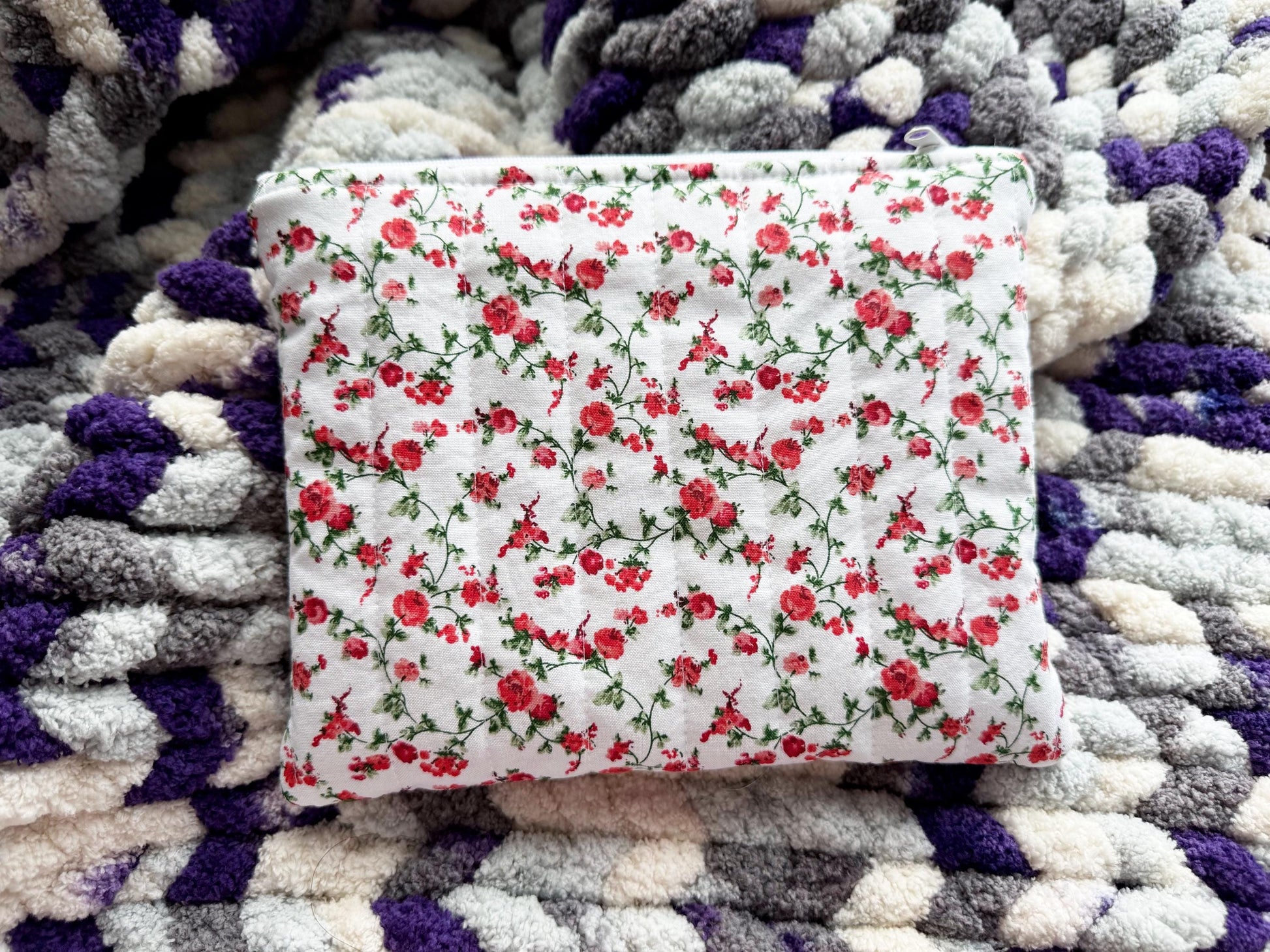 This adorable red rose pattern quilted zipper pouch is perfect to carry around and store all your items might need to carry around while out and about. Its also perfect for a small cosmetic bag to carry your daily items.