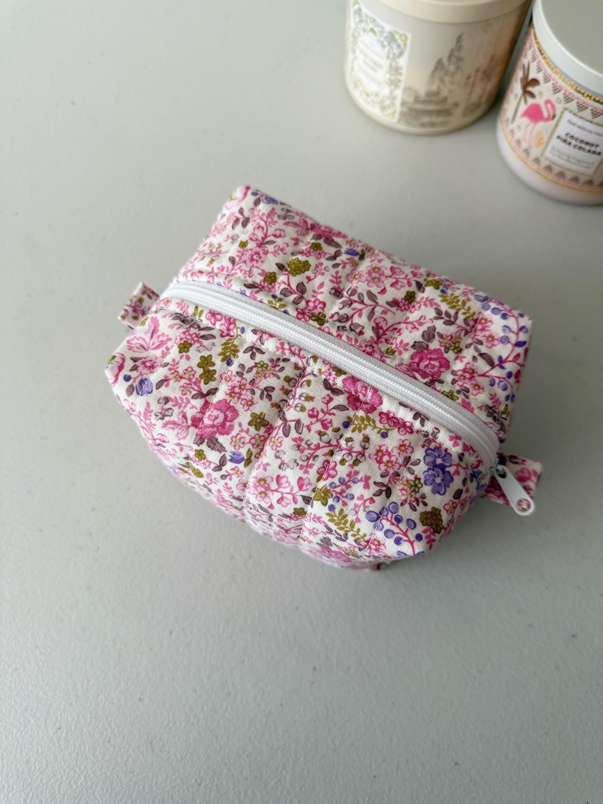Pink Floral Quilted Mini Boxy Makeup Bag