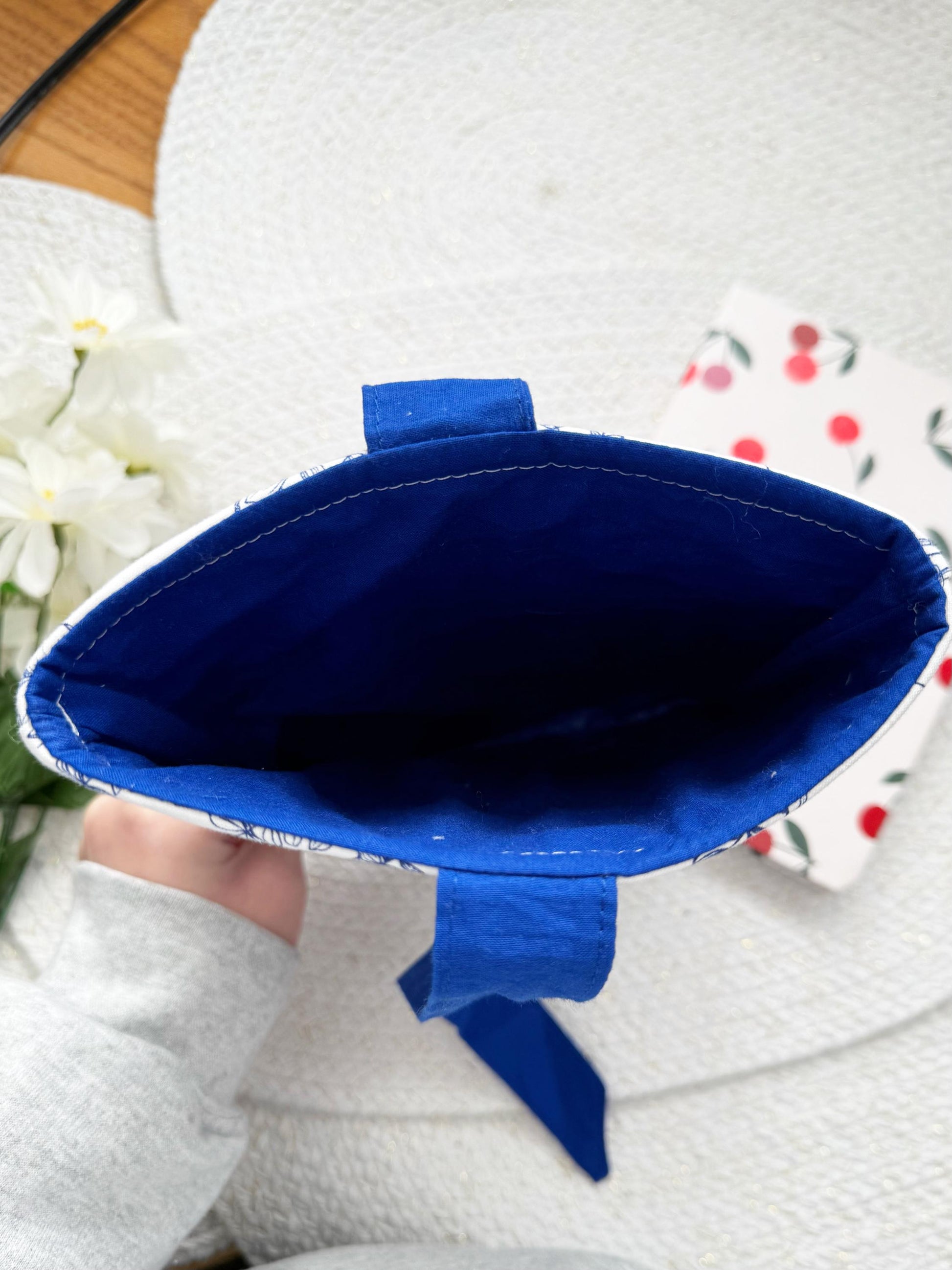 White & Navy Floral 'Enemies To Lovers Book Club' Embroidered Book Sleeve